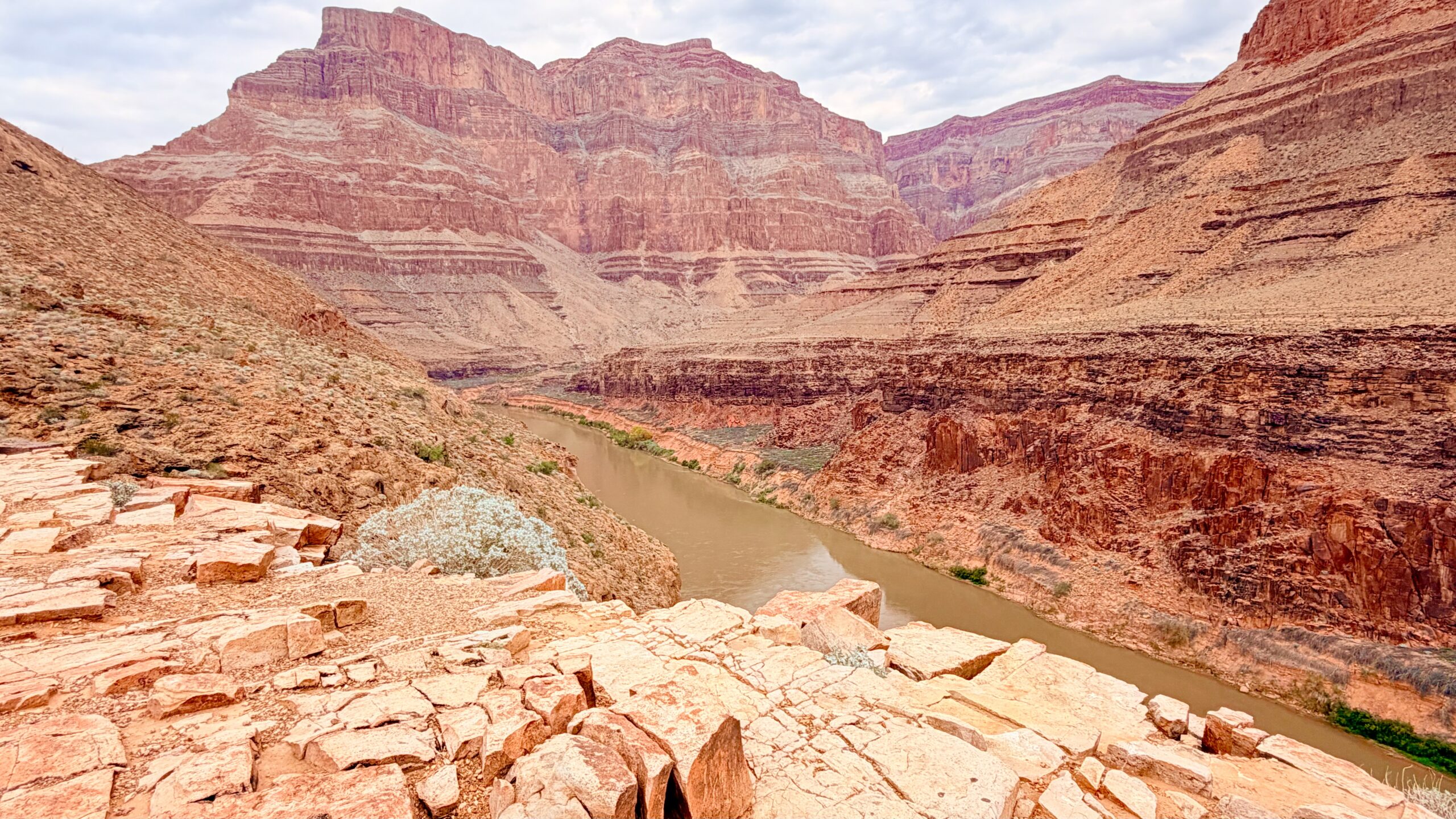 - Vistas del Rio Colorado y la paredes del Gran Cañon.