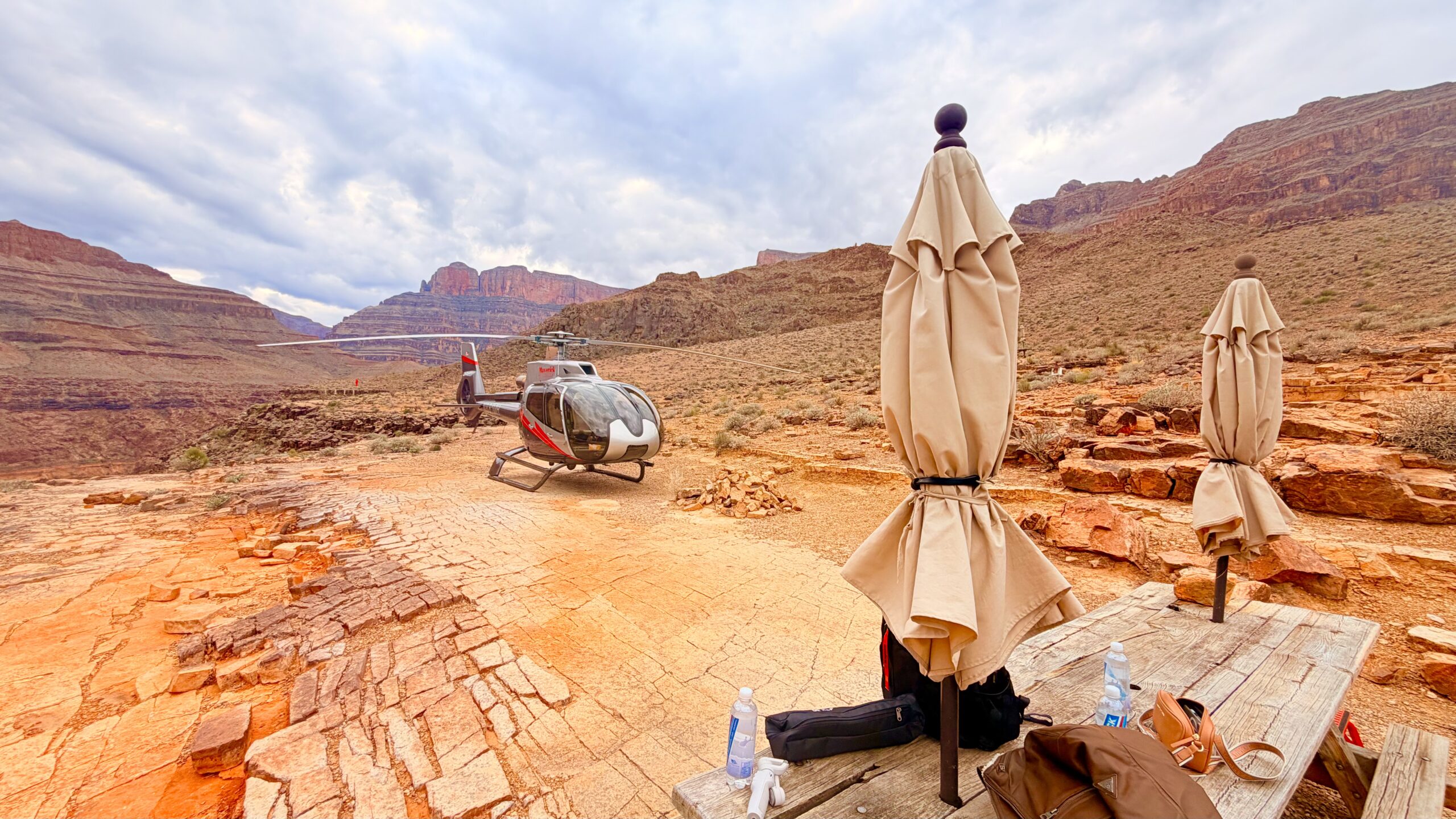 - Descenso en el Gran Cañón Picnic con el Helicóptero en tierra por 30 minutos para apreciar el fondo del Gran Cañón y tomar fotos al lado del Río Colorado.